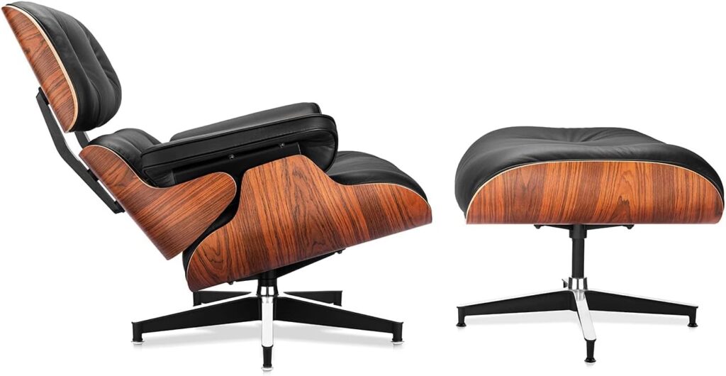 On Amazon and Wayfair, you can find well-reviewed replicas ranging from $600 to $1,500, like the top-grain leather version that mimics the classic design with molded plywood and genuine leather upholstery. Both offer similar options, like additional choices in leather color and wood finish. While these replicas won’t carry the Herman Miller stamp or the exact craftsmanship of the original, many use quality materials and construction methods that deliver remarkable comfort and visual appeal.